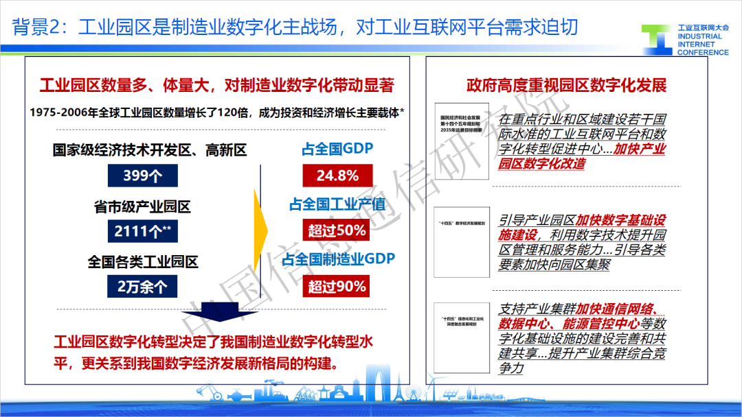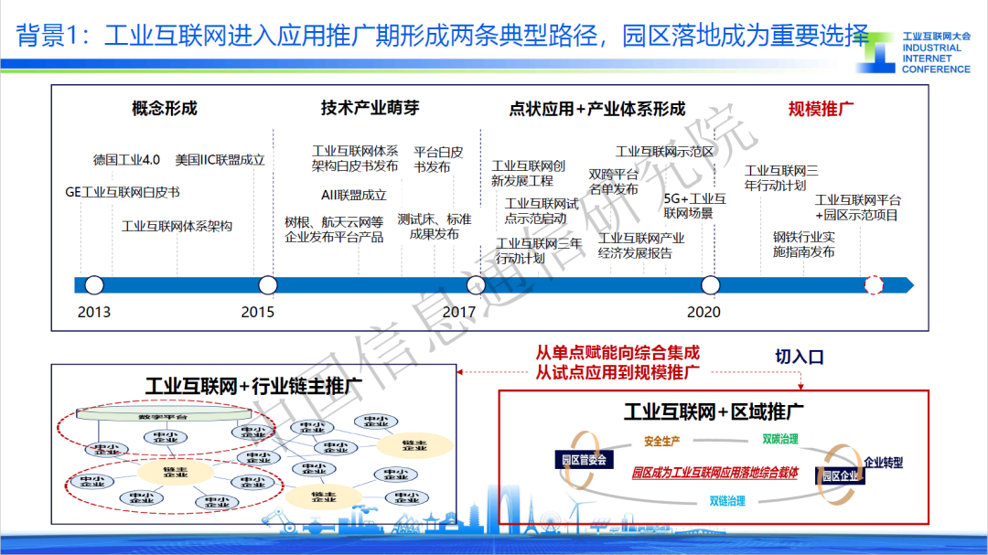 當前,工業(yè)互聯網進入應用推廣關鍵期,圍繞行業(yè)、區(qū)域形成了兩條推廣路徑,其中工業(yè)園區(qū)具有數量多、體量大的特點,對制造業(yè)數字化帶動效果顯著,已成為工業(yè)互聯網區(qū)域應用落地的關鍵載體。