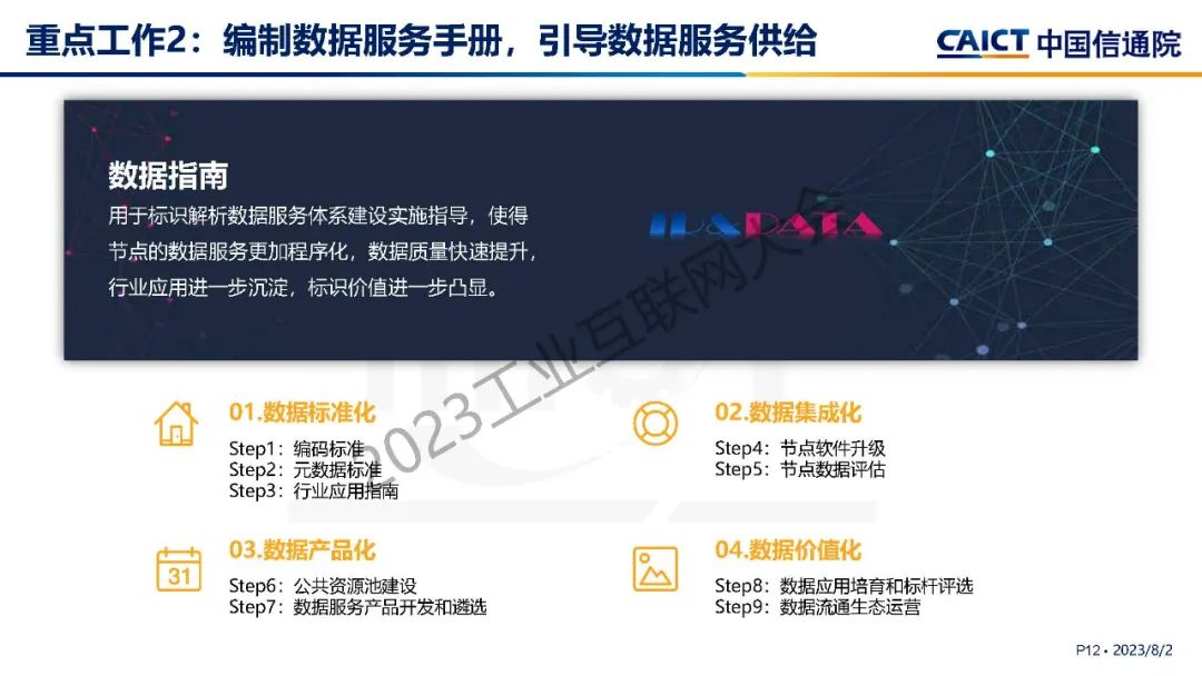 “工業(yè)互聯(lián)網(wǎng)標(biāo)識(shí)解析數(shù)據(jù)質(zhì)量提升計(jì)劃將通過(guò)實(shí)施關(guān)鍵標(biāo)準(zhǔn)研制、服務(wù)手冊(cè)編寫(xiě)、數(shù)據(jù)產(chǎn)品開(kāi)發(fā)、數(shù)據(jù)特區(qū)建設(shè)等重點(diǎn)任務(wù),推動(dòng)形成數(shù)據(jù)融通、服務(wù)暢通、應(yīng)用貫通的標(biāo)識(shí)數(shù)據(jù)流通生態(tài)。”