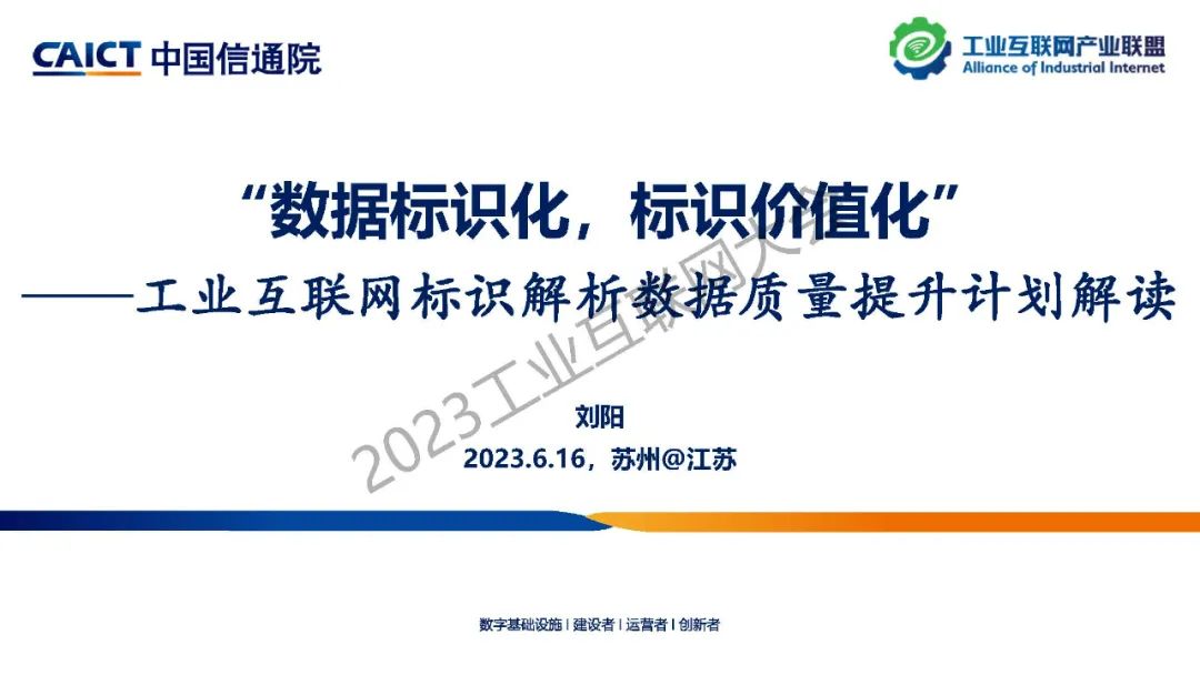 2023工業(yè)互聯(lián)網(wǎng)大會(huì)丨劉陽(yáng):工業(yè)互聯(lián)網(wǎng)標(biāo)識(shí)解析數(shù)據(jù)質(zhì)量提升計(jì)劃解讀