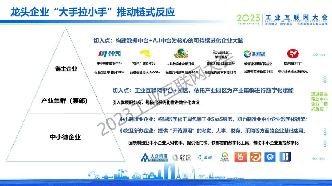 金暉指出,龍頭企業(yè)構(gòu)建數(shù)據(jù)中臺(tái)+A.I中臺(tái)為核心的可持續(xù)進(jìn)化企業(yè)大腦,產(chǎn)業(yè)集群通過工業(yè)互聯(lián)網(wǎng)平臺(tái)+園區(qū),依托產(chǎn)業(yè)園區(qū)為產(chǎn)業(yè)集群進(jìn)行數(shù)字化賦能,中小制造業(yè)企業(yè)可構(gòu)建數(shù)字化工具包等工業(yè)SaaS服務(wù),助力企業(yè)數(shù)字化轉(zhuǎn)型。