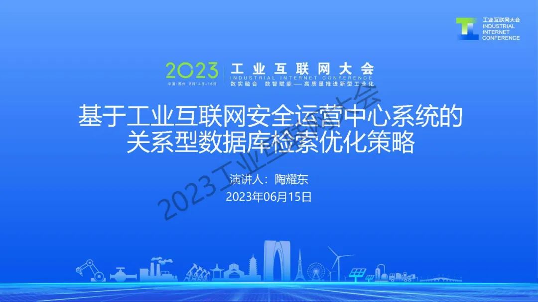 2023工業互聯網大會丨陶耀東:基于工業互聯網安全運營中心系統的關系型數據庫檢索優化策略