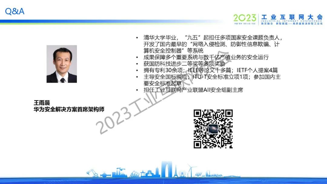 6月16日,在2023工業互聯網大會“工業互聯網安全融通發展論壇”上,華為技術有限公司安全技術總監、工業互聯網產業聯盟安全組副主席王雨晨發表了《構建高安全的韌性保障生產網》的主題演講。