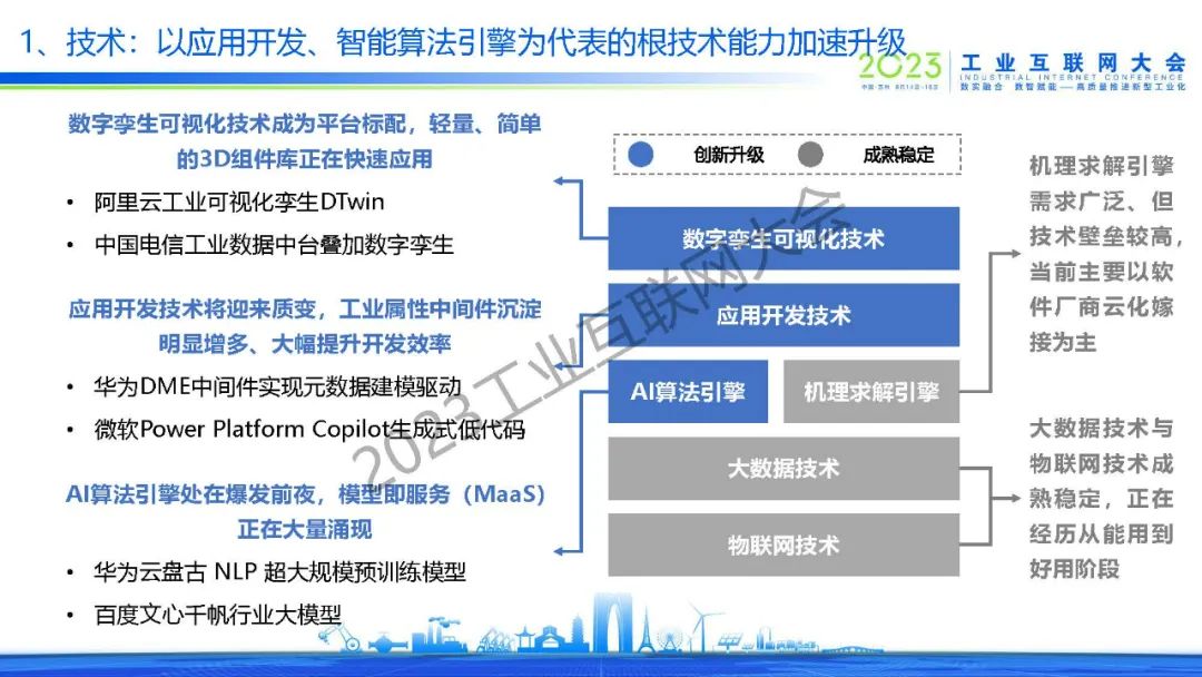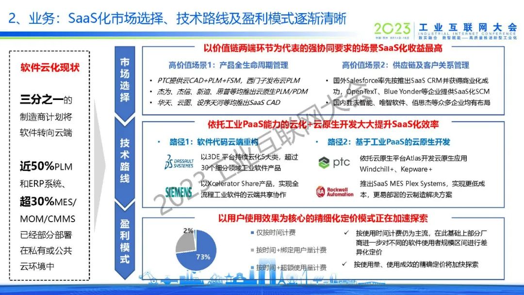 侯羽菲表示,工業互聯網平臺技術以應用開發、智能算法引擎為代表的根技術能力正在加速升級。業務方面,三分之一的制造商計劃將軟件轉向云端。近50%PLM和ERP系統、超30%MES/ MOM/CMMS已經部分部署在私有或公共云環境中。而未來應充分發揮我國制造業龍企業數據、場景優勢、電商企業資源優勢,加快補齊、增強、創新我國數字化服務商的技術產品能力,探索形成我國工業互聯網平臺發展的特色路徑。