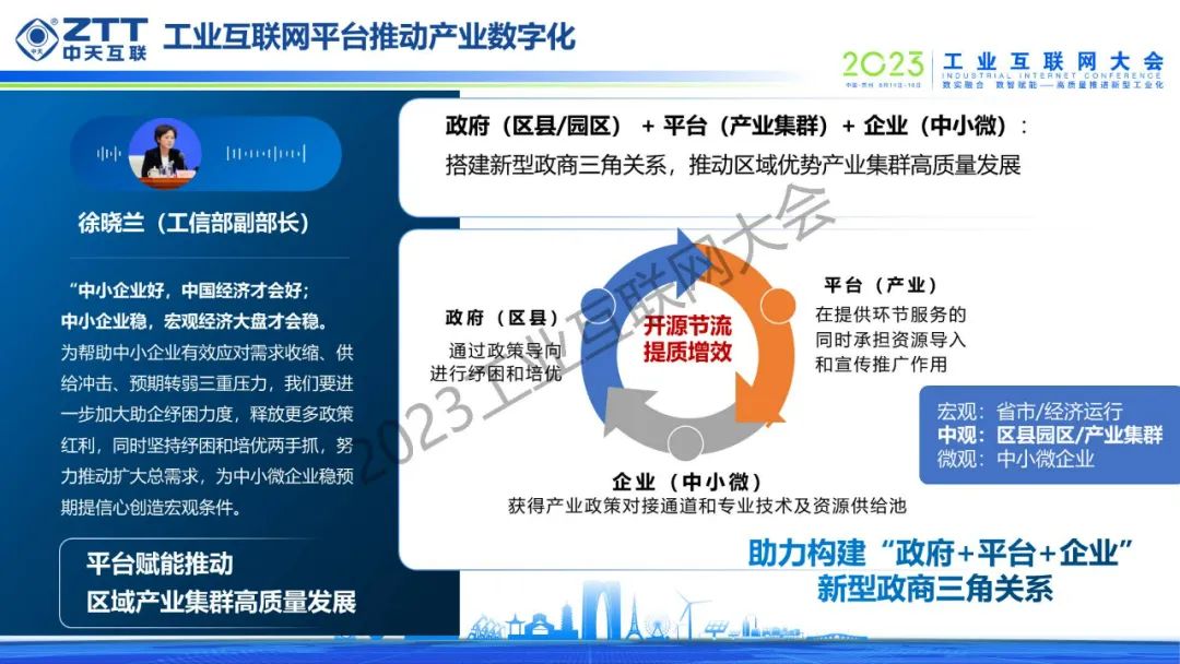 2023工業互聯網大會于2023年6月14至16日在江蘇省蘇州市召開。大會由工業和信息化部、江蘇省人民政府主辦,中國信息通信研究院、江蘇省工業和信息化廳、江蘇省通信管理局、蘇州市人民政府、工業互聯網產業聯盟、中國通信學會、中國互聯網協會承辦。