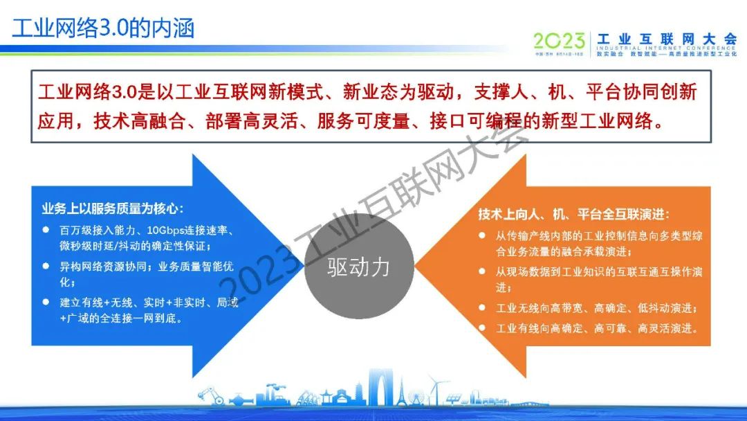 “工業(yè)網(wǎng)絡3.0是以工業(yè)互聯(lián)網(wǎng)新模式、新業(yè)態(tài)為驅(qū)動,支撐人、機、平臺協(xié)同創(chuàng)新應用,技術高融合、部署高靈活、服務可度量、接口可編程的新型工業(yè)網(wǎng)絡。“