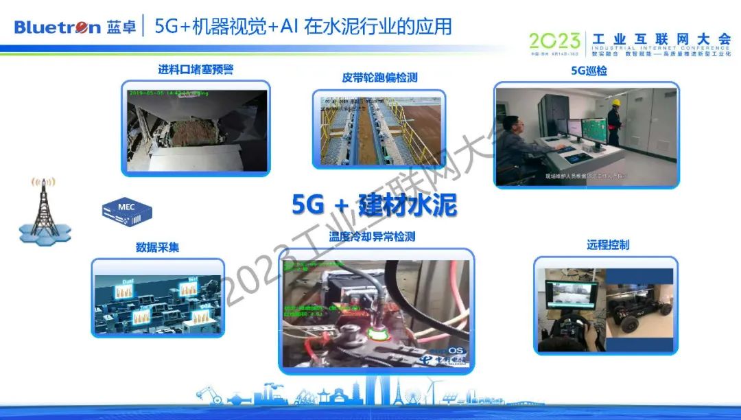 在蕪湖的一家水泥企業(yè),supOS通過機器識別的方式,對進料口堵塞、皮帶輪跑偏進行檢測和預警,同時,在特殊環(huán)境下通過視覺識別,根據(jù)火焰顏色建模分析,實時監(jiān)控設備的溫度與冷卻情況,確保企業(yè)平穩(wěn)生產(chǎn)。而這些環(huán)境都需要5G大帶寬、低延時的特性。
