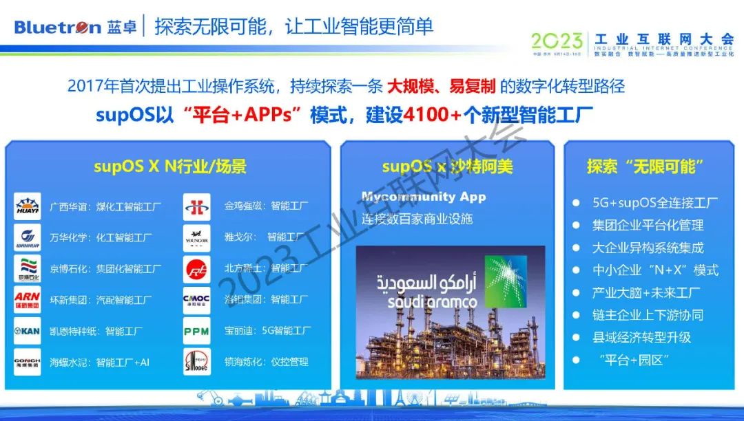 目前,藍卓正以“平臺+APP”的模式在全球范圍內(nèi)打造了4100個新型智能工廠,基于工業(yè)操作系統(tǒng)的特性,藍卓也在不斷探索supOS與5G的創(chuàng)新融合,未來也希望與更多的伙伴通力合作,共同高質(zhì)量推進我國新型工業(yè)化的建設。