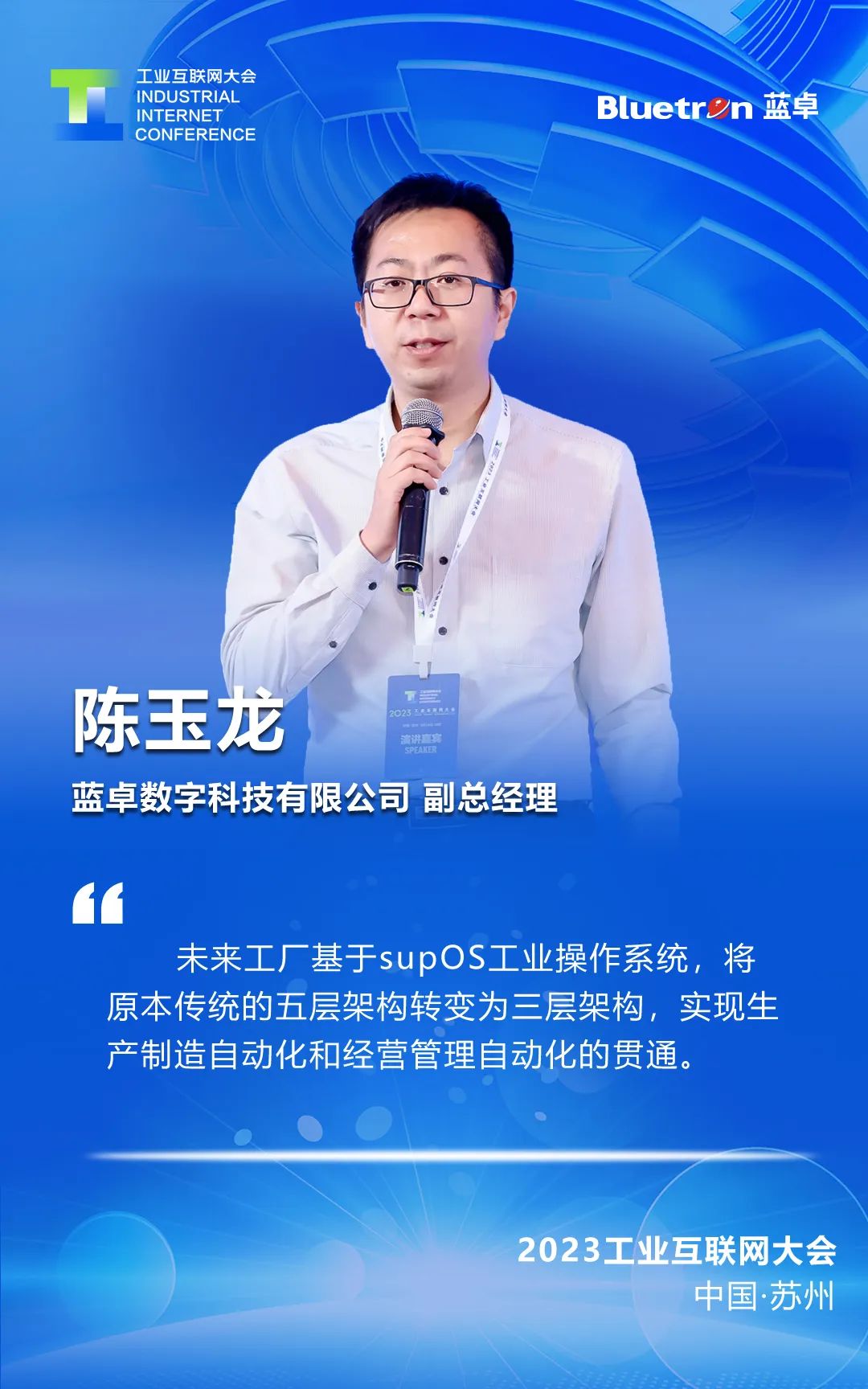 6月15日,在2023工業(yè)互聯(lián)網(wǎng)大會“5G+工業(yè)互聯(lián)網(wǎng)”融合發(fā)展高端論壇上,藍卓數(shù)字科技有限公司副總經(jīng)理陳玉龍從工業(yè)操作系統(tǒng)+5G融合應用的角度,介紹了傳統(tǒng)工廠走向未來工廠的建設思路。