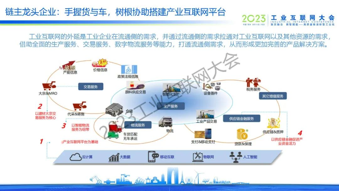 “工業互聯網的外延是工業企業在流通側的需求,并通過流通側的需求拉通對工業互聯網以及其他資源的需求,借助全面的生產服務、交易服務、數字物流服務等能力,打通流通側需求,從而形成更加完善的產品解決方案。“