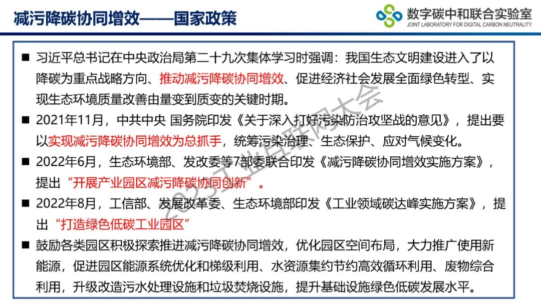 周濤指出我國園區減污降碳存在問題:1、園區底數不清,基礎薄弱,2、減污降碳協同技術政策體系不完善,3、缺乏系統減污降碳全流程管控體系,4、園區類型多樣,發展階段不一。園區應該盡快摸清物質流,能量流路徑,查找可以協同的部分,尋找可行技術、系統集成、優化物流能流,測算和評估減污、降碳的效果與成本,確保可行性與保障措施。
