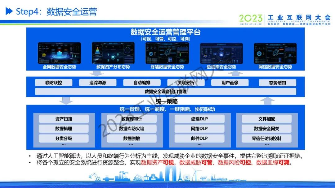 張蘭蘭表示,工業互聯網數據安全是保障企業正常開展生產經營活動的重要前提,經濟社會穩定發展的重要基石,也是總體國家安全戰略的重要組成。數據安全運營管理平臺通過安全智能識別、防護、檢測、運營做到可視、可管、可控和可溯。