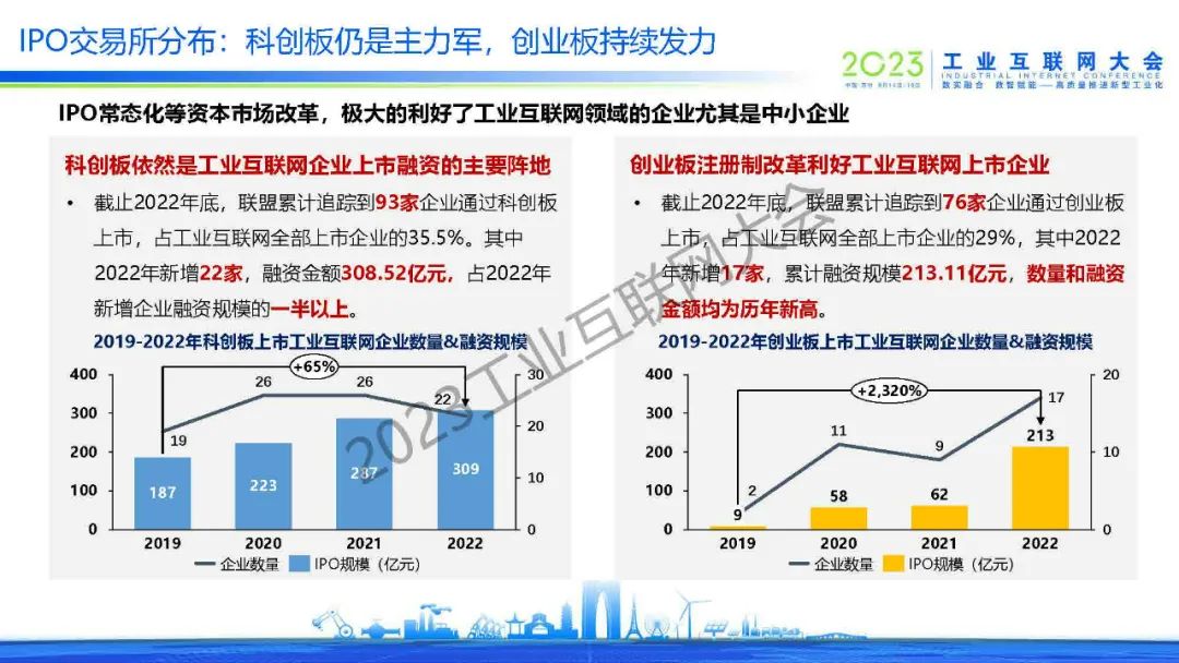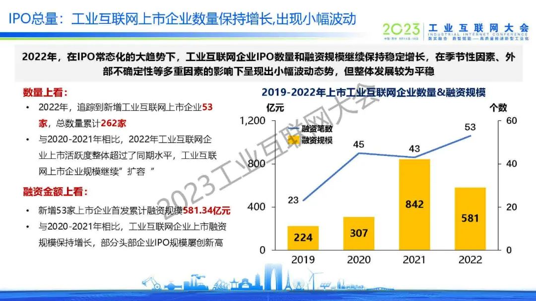 肖榮美指出,2022年工業互聯網企業的IPO數量和融資規模整體保持穩定增長,在季節性因素、外部不確定性等多重因素的影響下呈現出小幅波動態勢。受宏觀經濟波動影響,2022年我國創投整體的景氣水平不如預期,工業互聯網作為“硬科技”的主要賽道之一也受到波及。2023年工業互聯網有望進入新的增長周期,在資本的助力下行業的規?;l展將進一步加速。