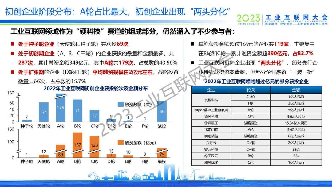 6月14日,在2023工業互聯網大會“工業互聯網產融推進論壇”上,工業互聯網產業聯盟政策法規與投融資組主席、中國信息通信研究院政策與經濟研究所副所長肖榮美發表了《2022年中國工業互聯網投融資發展情況及行業洞察》的主題演講。