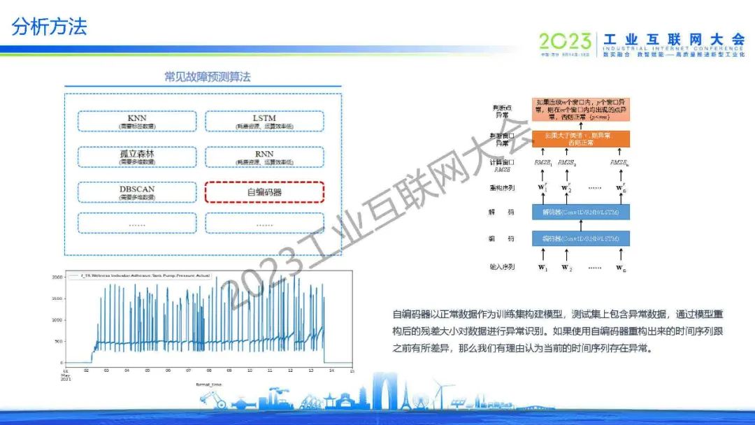 “常見的故障預(yù)測算法:自編碼器以正常數(shù)據(jù)作為訓(xùn)練集構(gòu)建模型,測試集上包含異常數(shù)據(jù),通過模型重構(gòu)后的殘差大小對數(shù)據(jù)進(jìn)行異常識別。如果使用自編碼器重構(gòu)出來的時間序列跟之前有所差異,那么我們有理由認(rèn)為當(dāng)前的時間序列存在異常。