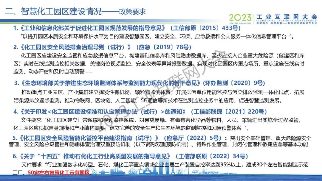 6月15日,在2023工業(yè)互聯(lián)網(wǎng)大會“工業(yè)互聯(lián)網(wǎng)+危化安全生產(chǎn)數(shù)字化轉(zhuǎn)型論壇”上,中國石油和化學(xué)工業(yè)聯(lián)合會化工園區(qū)工作委員會處長馬從越發(fā)表了《智慧化工園區(qū)建設(shè)進展與應(yīng)用實踐》的主題演講。