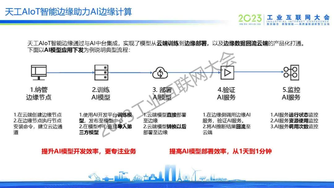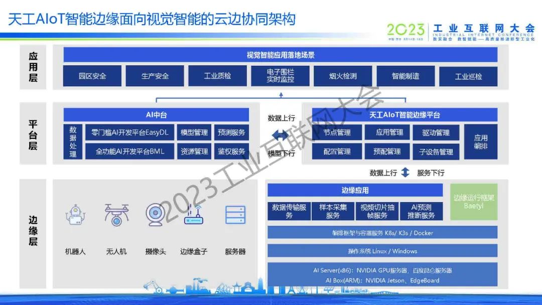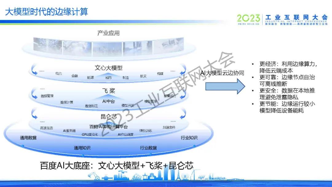 黃誠(chéng)表示看好物聯(lián)網(wǎng)+邊緣+云+大模型的邊緣計(jì)算技術(shù)路線,相信AI大模型云邊協(xié)同將支持更經(jīng)濟(jì)、更可靠、更安全、更節(jié)能的大模型邊緣應(yīng)用實(shí)踐。他介紹了百度的邊緣計(jì)算布局和AI大模型云邊協(xié)同技術(shù)理念,分享了百度智能邊緣BIE的整體架構(gòu)及核心亮點(diǎn),并結(jié)合AI邊緣計(jì)算典型流程及百度的產(chǎn)業(yè)實(shí)踐案例,對(duì)BIE集成AI中臺(tái)的AIoT技術(shù)實(shí)踐做了概要說(shuō)明。