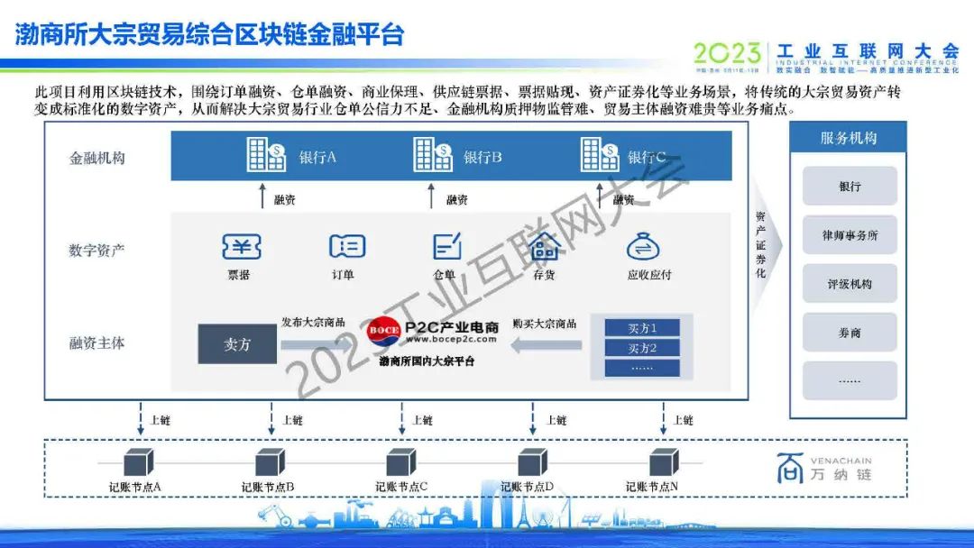 “基于區塊鏈技術,以汽車整車物流作為實際業務場景,集物流管理、結算對賬與供應鏈金融三大服務的綜合服務平臺。汽車整車物流業務全流程上鏈,實現電子化管理。各業務方可在平臺上管理電子化訂運單,上下游企業可在線對賬。承運商可基于電子化數據向金融機構發起融資申請。”