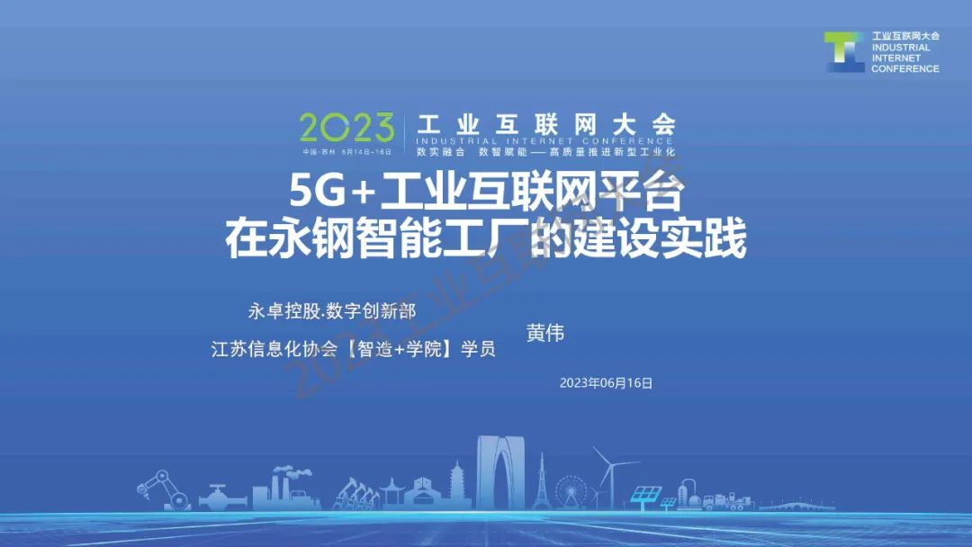 6月16日,在2023工業(yè)互聯(lián)網(wǎng)大會“工業(yè)互聯(lián)網(wǎng)與鋼鐵行業(yè)融合應(yīng)用論壇”上,江蘇永鋼集團有限公司技術(shù)總監(jiān)黃偉發(fā)表了《5G+工業(yè)互聯(lián)網(wǎng)平臺在永鋼智能工廠的建設(shè)實踐》的主題演講。