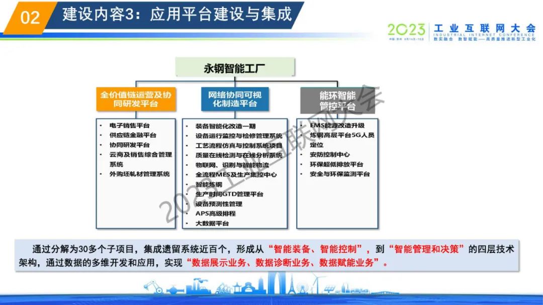黃偉表示傳統(tǒng)的大體量、粗放式、弱研發(fā)、輕環(huán)保的管理模式,讓普通鋼鐵企業(yè)難以滿足市場需求,經(jīng)濟效益低,難以產(chǎn)生積極性,特種鋼材行業(yè)發(fā)展陷入困局,嚴重制約國內(nèi)高端制造業(yè)的發(fā)展。永鋼智能工廠通過分解為30多個子項目,集成遺留系統(tǒng)近百個,形成從“智能裝備、智能控制”,到“智能管理和決策”的四層技術(shù)架構(gòu),通過數(shù)據(jù)的多維開發(fā)和應(yīng)用,實現(xiàn)“數(shù)據(jù)展示業(yè)務(wù)、數(shù)據(jù)診斷業(yè)務(wù)、數(shù)據(jù)賦能業(yè)務(wù)”。