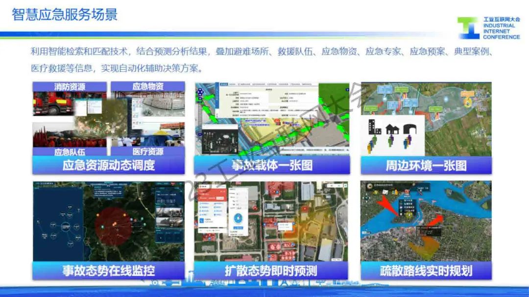 “智慧應(yīng)急服務(wù)場(chǎng)景利用智能檢索和匹配技術(shù),結(jié)合預(yù)測(cè)分析結(jié)果,典型案例疊加避難場(chǎng)所、救援隊(duì)伍、應(yīng)急物資、應(yīng)急專家、應(yīng)急預(yù)案、醫(yī)療救援等信息,實(shí)現(xiàn)自動(dòng)化輔助決策方案。”