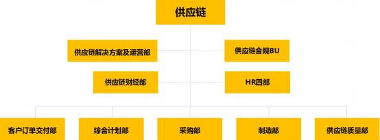 中興通訊供應鏈組織結構如下 ,包括五個業務部門 :客戶訂單交付部、綜合計劃部、 采購部、制部、質量部 ,四個平臺管理部門 :供應鏈解決方案及運營部、供應鏈財經 部、供應鏈合規 BU、  HR 四部。
