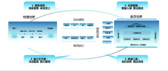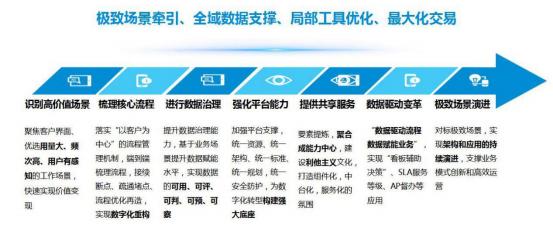 在如何開展數字化轉型方面 ,我們沉淀了數字化轉型的方法論 ,我們總結為四句話 , 極致場景牽引、全域數據支撐、局部工具優化、實現最大化交易。這套方法論在所有