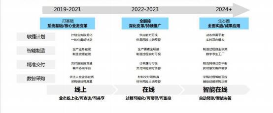 數字化轉型中 ,最困擾我們的就是路徑是什么 ,我們通過大量的研討和思考 ,對比 最優方案后 ,思考出針對供應鏈的 ROADMAP ,在這個路徑中 ,我們關注每個模 塊都有路徑 ,數字化轉型過程可以不同步 ,但目標是一致的。