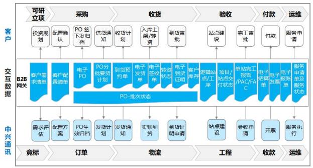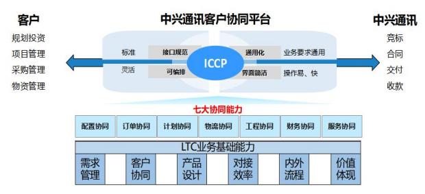 從 2019 年開始 ,中興通訊搭建了客戶協同平臺( iCCP )  ,形成了與客戶之間的配 協同、訂單協同、計劃協同、物流協同、財務協同、工程協同、服務協同等七大協同