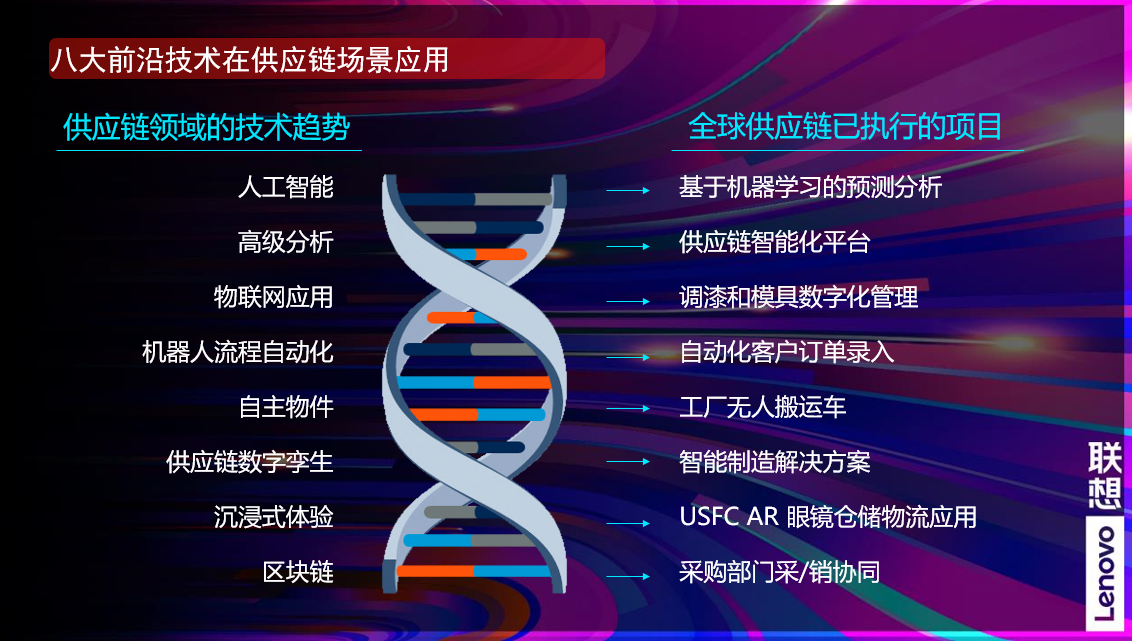 此外聯(lián)想基于技術(shù)平臺深入實踐新技術(shù)在供應鏈的應用場景,在預測分析,運籌優(yōu)化,預測性維護,AR/VR等方面領域都取得了突破性進展。