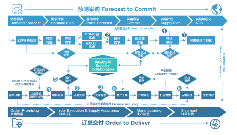 長期以來,在聯(lián)想供應鏈中訂單執(zhí)行和計劃為相對獨立的流程,從需求到供應流程關(guān)注在預測發(fā)布,物料計劃,僅在預測范圍內(nèi)對前端進行供應反饋。訂單到交付關(guān)注于在工廠端訂單的執(zhí)行。由于兩者缺乏協(xié)同導致業(yè)務存在以下痛點: