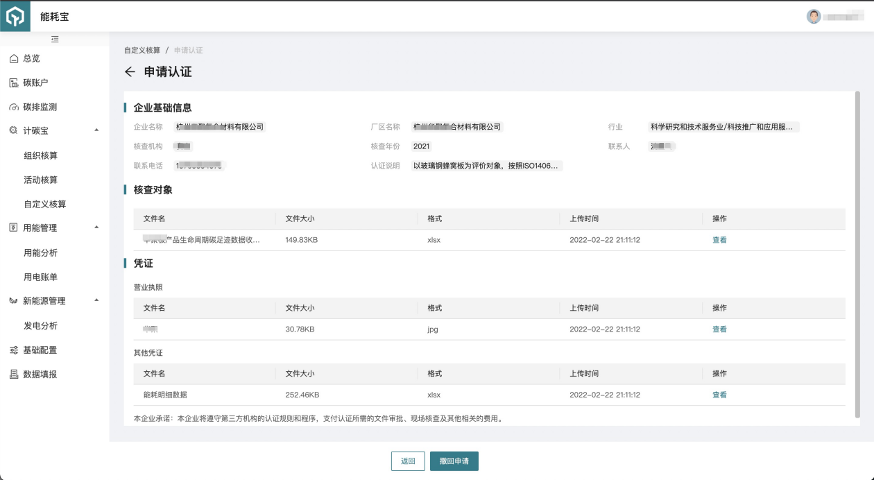 基于碳足跡建模和核算結(jié)果,進(jìn)一步,通過(guò)在線認(rèn)證工具鏈接的第三方認(rèn)證公司,完成產(chǎn)品碳足跡的在線認(rèn)證。最后通過(guò)能耗寶進(jìn)行報(bào)告、證書(shū)和標(biāo)簽的生成。