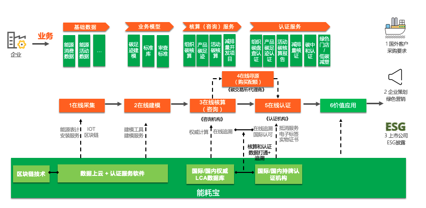 企業(yè)通過(guò)購(gòu)買(mǎi)和使用的一站式碳足跡服務(wù),將傳統(tǒng)的數(shù)據(jù)收集、產(chǎn)品碳排放模型構(gòu)建、產(chǎn)品碳足跡核算、產(chǎn)品碳足跡認(rèn)證以及后續(xù)綠色營(yíng)銷,能耗寶通過(guò)數(shù)字化技術(shù),實(shí)現(xiàn)數(shù)據(jù)收集、產(chǎn)品碳排放模型構(gòu)建、產(chǎn)品碳足跡核算、產(chǎn)品碳足跡認(rèn)證等一站式在線服務(wù),助力企業(yè)實(shí)現(xiàn)碳足跡的低成本核算認(rèn)證以及產(chǎn)品綠色營(yíng)銷服務(wù)。