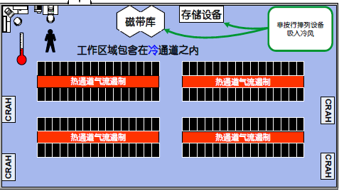 熱通道封閉應用。采用了“面對面、背對背”冷熱通道的機柜布置方式,冷熱通道的氣流互相分隔,得到有效管理,避免了氣流短路,提高了機房系統的制冷效率,溫度場分布均勻;封閉熱通道后,熱池大大減小,空調回風溫度達到35℃以上,使空調末端的能效比得到進一步提高,更加節能。