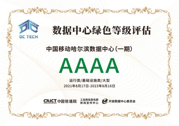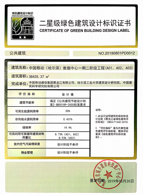 哈爾濱數據中心在規劃設計、項目建設、運行維護各個環節,引入綠色建筑、自然冷源、新型空調末端、余熱回收、能耗管理、智能運維等多種數字化節能降碳技術,有效實現PUE不斷降低,2021年PUE值降低至1.349。2020年6月,工信部對哈爾濱數據中心開展能效監察工作,哈爾濱數據中心被評定為國家一級節能單位。