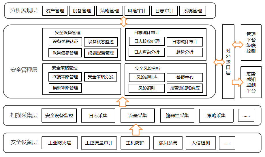 在生產管理層核心交換機上搭建一套安全集中管理中心,通過安全集中管理中心對生產網的安全設備、網絡設備、安全軟件進行集中管理和日志集中存儲分析,通過安全集中管理中心的漏洞掃描設備定期的對生產控制系統的服務器和主機進行漏洞掃描,及時發現工控系統內部的系統漏洞并進行修復。