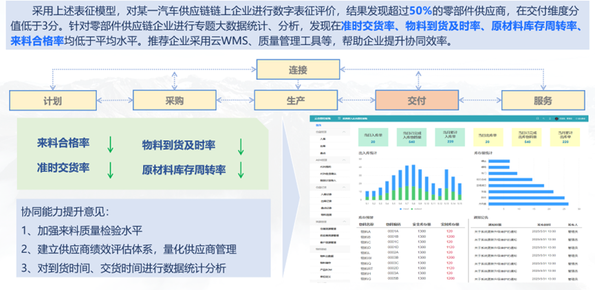 為提升汽車供應(yīng)鏈協(xié)同效率,重慶工業(yè)大數(shù)據(jù)創(chuàng)新中心針對未進(jìn)行供應(yīng)數(shù)字化轉(zhuǎn)型或轉(zhuǎn)型不徹底的企業(yè),通過全鏈條平臺產(chǎn)品或模塊化產(chǎn)品,實(shí)現(xiàn)企業(yè)的供應(yīng)鏈數(shù)字化轉(zhuǎn)型。針對已具有數(shù)字化供應(yīng)鏈企業(yè),則利用大數(shù)據(jù)、人工智能、區(qū)塊鏈、數(shù)字孿生等技術(shù),通過智能供應(yīng)鏈管理產(chǎn)品,實(shí)現(xiàn)企業(yè)的供應(yīng)鏈智能化。