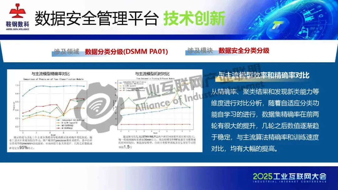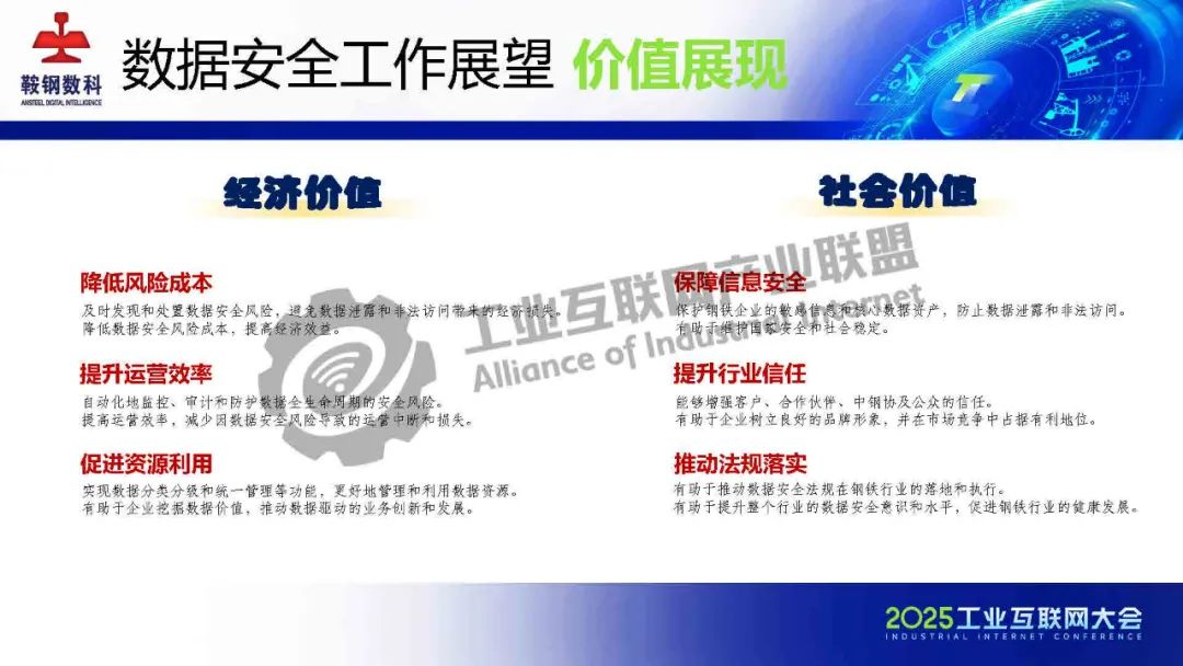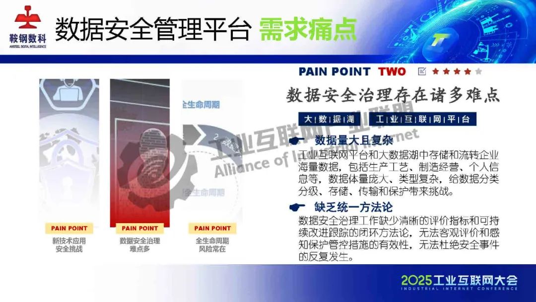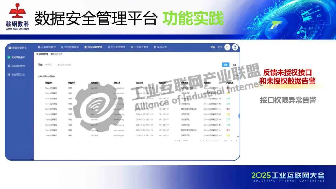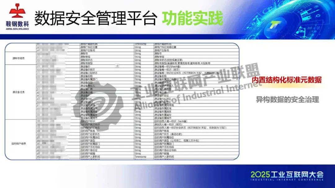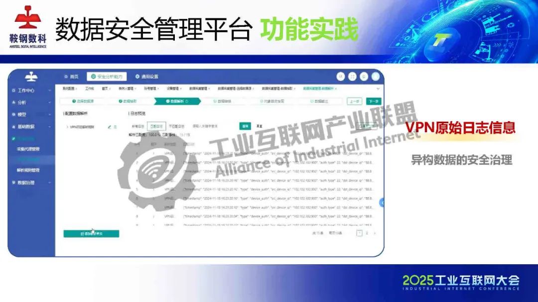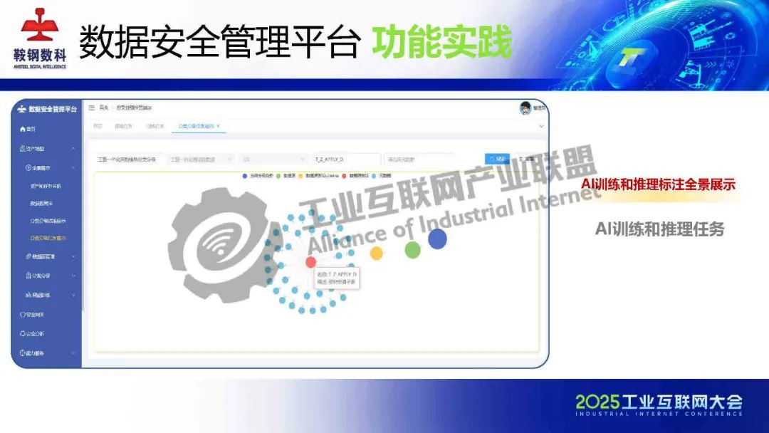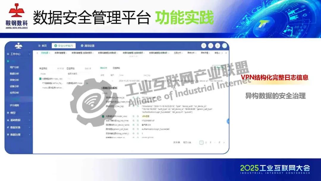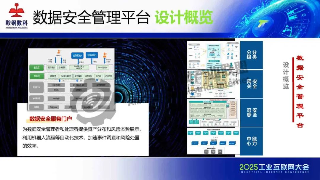 5月23日,在2025工業互聯網大會“新型工業化網絡與數據安全專題活動”上,鞍鋼數智科技(遼寧)有限公司產品研發中心網安研發經理韓劍飛發表了《基于AI的鋼鐵行業工業互聯網數據安全管理平臺的設計與實踐》的主題演講。