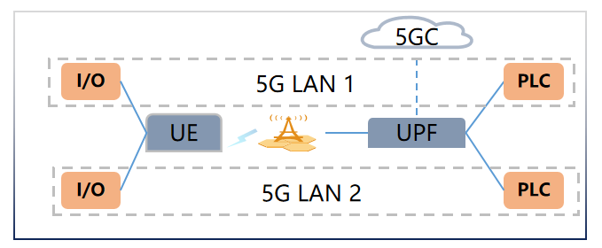 通過5G LAN組網,5G LAN內部的組播通信,實現主備PLC的冗余部署。