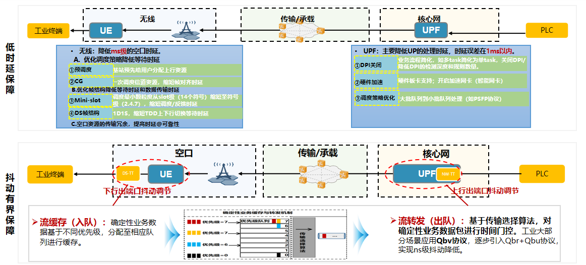 5G時延抖動有界保障,當前主要通過TSN 802.1Qbv的時間門口機制來實現,即通過分別位于UE和UPF的DS-TT和NW-TT來實現時延的調節。