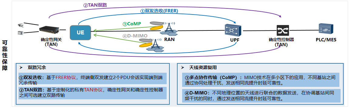 5G網絡的可靠性保障,主要通過冗余傳輸來實現,包括無線空口的冗余傳輸、5G內部的冗余傳輸(TSN 802.1CB)、業務級的冗余傳輸(比如基于TAN協議)等。