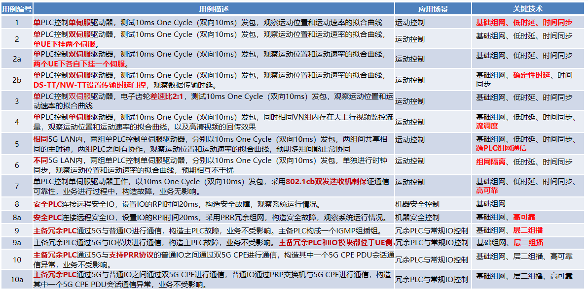 驗證5G確定性技術的能力,驗證產業的支持度,驗證5G與工業協議的融合度,驗證5G通信能力對工業自動化應用場景(數據采集、普通IO、機器安全控制、運動控制)的覆蓋能力,發現并解決存在的問題。